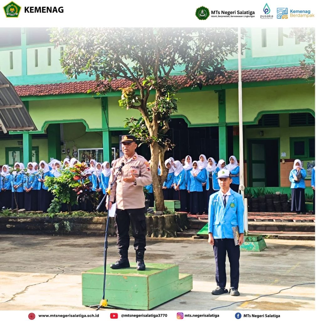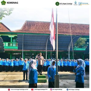 Salatiga- Upacara bendera hari Senin, 9 Februari 2026, di MTs Negeri Salatiga berlangsung dengan suasana tertib dan khidmat. Kegiatan ini sekaligus menjadi momentum pelaksanaan program Police Goes to School sebagai bentuk sinergi antara madrasah dan aparat kepolisian dalam pembinaan karakter peserta didik. Seluruh siswa, guru, dan tenaga kependidikan mengikuti kegiatan dengan penuh perhatian sejak awal hingga akhir upacara.